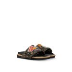 This edition of the Pool Pillow flat comfort mule is part of the seasonal Elysee Palace collection of leather goods, ready-to-wear and accessories, which celebrates the spirit of travel. This model is notable for its adjustable, padded front strap, which comes in nylon printed with a vintage-look Monogram pattern and colorful travel labels.
