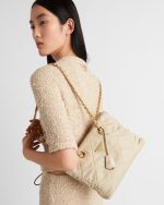 Padding and top-stitching enhance the versatile design of this bag made of Re-Nylon, a technical fabric that blends artisan crafting and innovation.