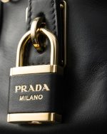 Be the first to review “Re-Nylon and Leather Small Top-Handle Bag With Padlock”