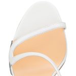 The Rosalie is Maison Christian Louboutin’s stunning contemporary twist on the timeless stiletto sandal. Simple, elegant lines come together in an innovative design, featuring a slender strap that starts off as a slingback and wraps gently around the foot, culminating in a wavy design over the toe. This narrow strap features a two-piece construction and is supported by a post strap. This model is crafted in buttery-soft bianco white leather with a towering 100 mm heel.