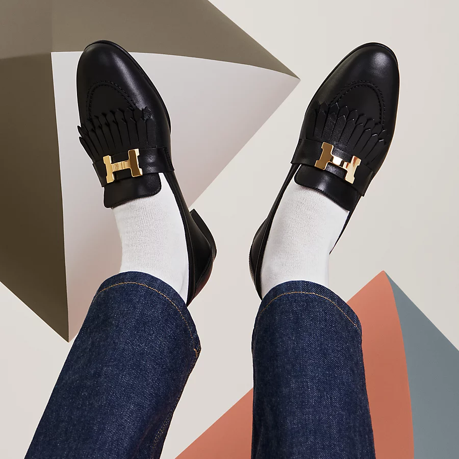 Loafer in goatskin with fringe detail and signature Paris buckle.