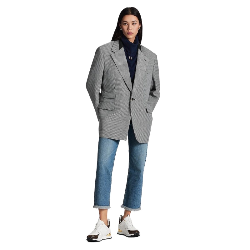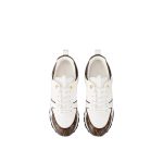 The Run Away sneaker is Louis Vuitton’s iconic reinterpretation of a classic running shoe. This version is crafted from supple calf leather and patent Monogram canvas, and features a gold-tone metal plaque and an LV Circle logo on the side. The wedge-shaped outsole discreetly adds extra height.