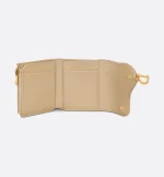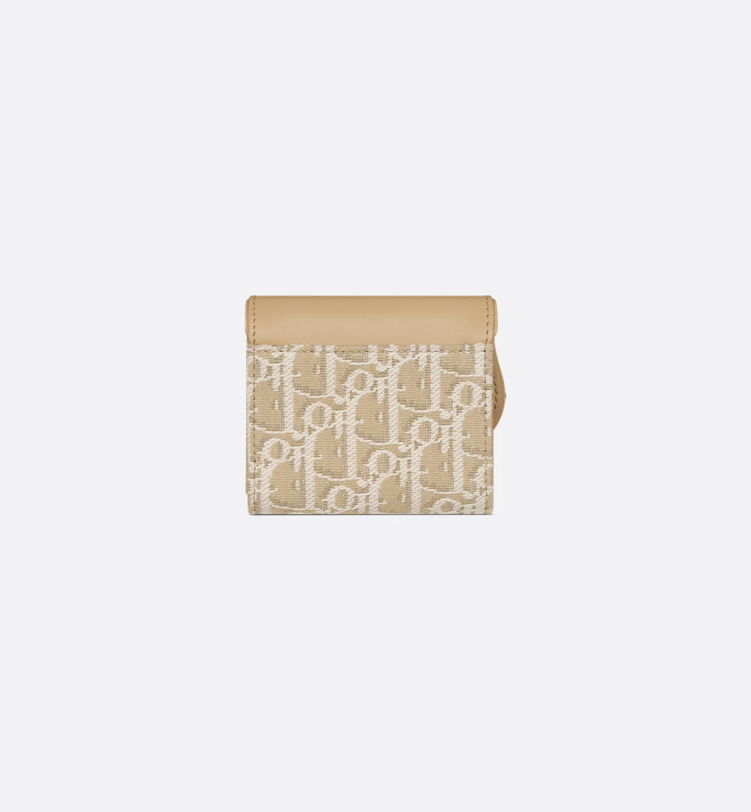 The Saddle Lotus wallet honors emblematic Saddle lines with its asymmetric flap and D stirrup in antique gold-finish metal. Crafted in natural Dior Oblique jacquard, it is embellished with tonal smooth calfskin detailing. The timeless accessory is spacious enough to hold all the essentials and can be easily slipped into any bag.