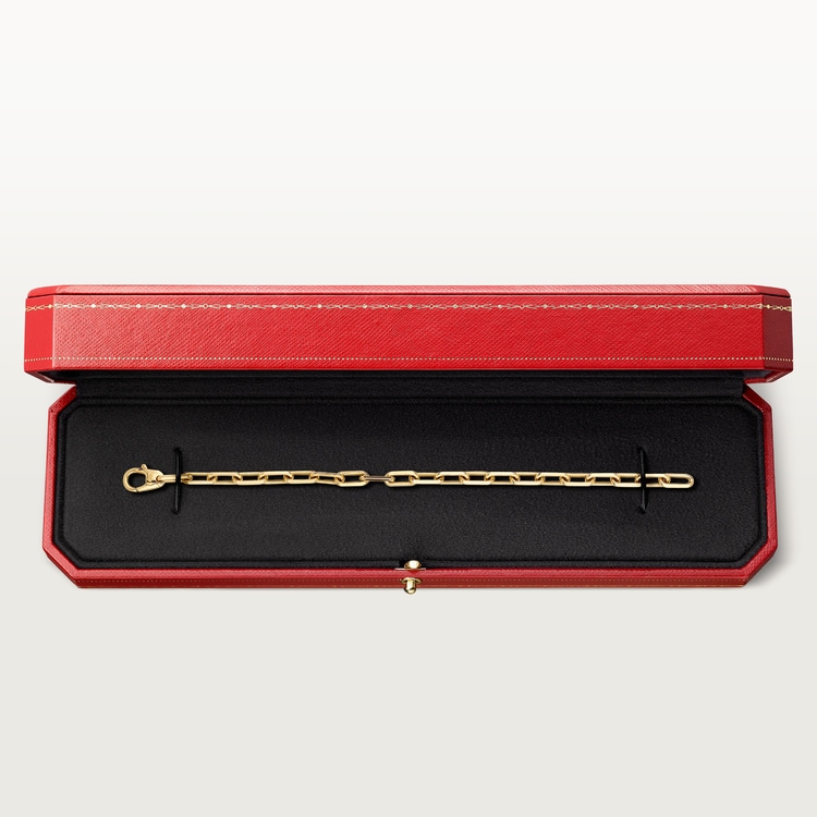 Product Description:Santos de Cartier chain bracelet 18K yellow gold (750/1000) Thickness:2 mm Length:192 to 205 mm (for size 17)