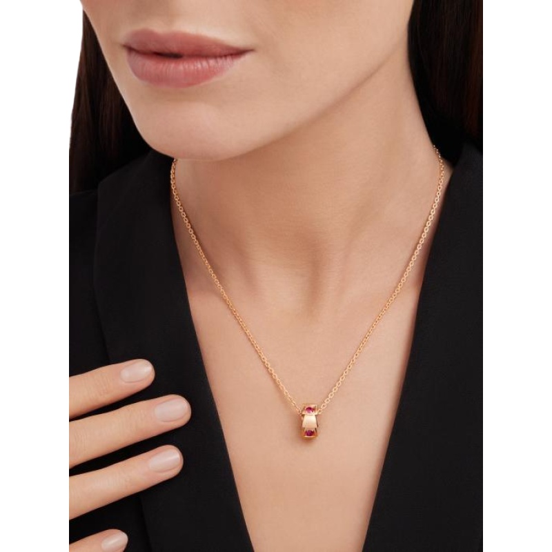 Serpenti Viper pendant necklace, made of 18K rose gold, inlaid with rubies.