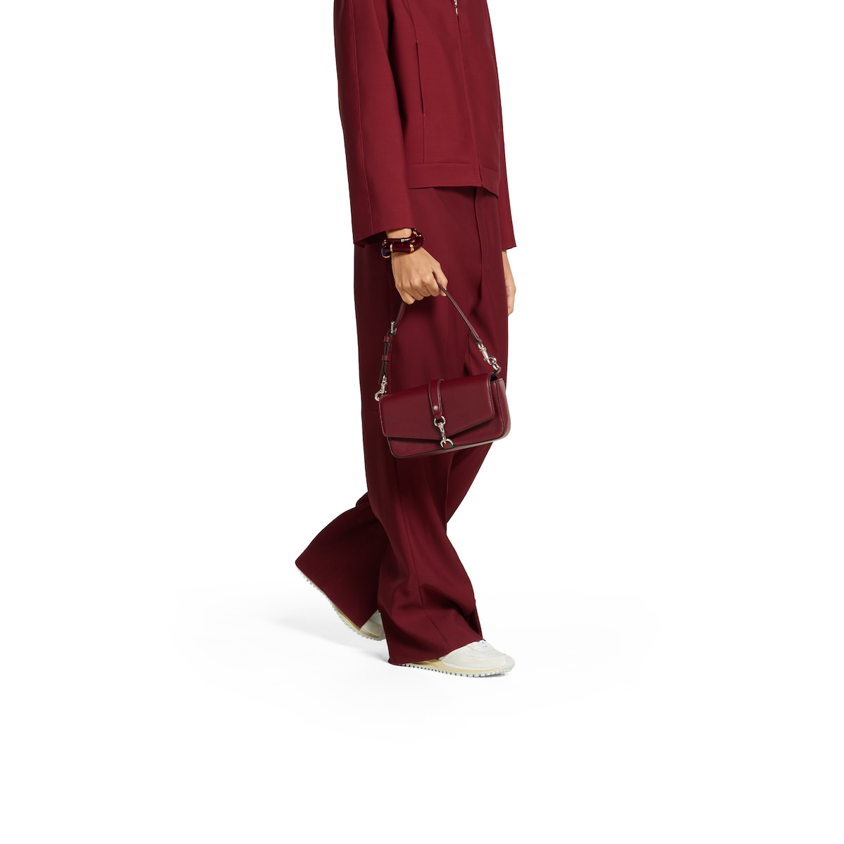 In the Spring Summer 2025 collection, crossbody bags in the House’s distinctive aesthetic feature a flap closure and the snap hook hardware, a new signature design of the House. This Gucci Rosso Ancora red grainy design features a Web detail alongside the signature snap hook closure.