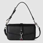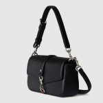 In the Spring Summer 2025 collection, crossbody bags in the House’s distinctive aesthetic feature a flap closure and the snap hook hardware, a new signature design of the House. This black grainy design features a Web detail alongside the signature snap hook closure.