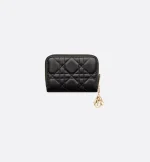 The Lady Dior Voyageur coin purse is both timeless and spacious. Crafted in black Cannage lambskin, it is enhanced by detachable D.I.O.R. charms. A chic and compact companion, the small coin purse will pair elegantly with other Lady Dior creations.
