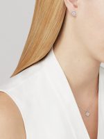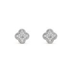 Sweet Alhambra earstuds, rhodium plated 18K white gold, round diamonds; diamond quality DEF, IF to VVS.
