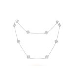 Sweet Alhambra long necklace, 16 motifs, rhodium plated 18K white gold, round diamonds; diamond quality DEF, IF to VVS.