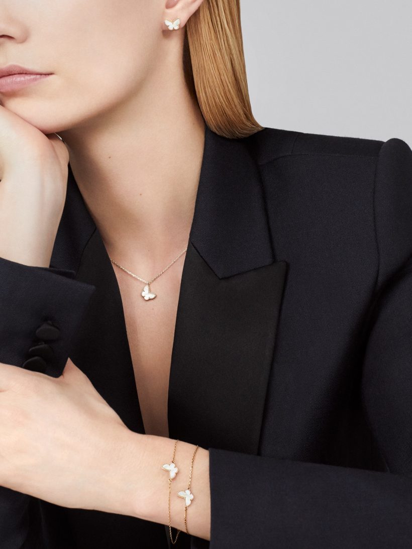 Sweet Butterflies bracelet, 18K yellow gold, white mother-of-pearl.