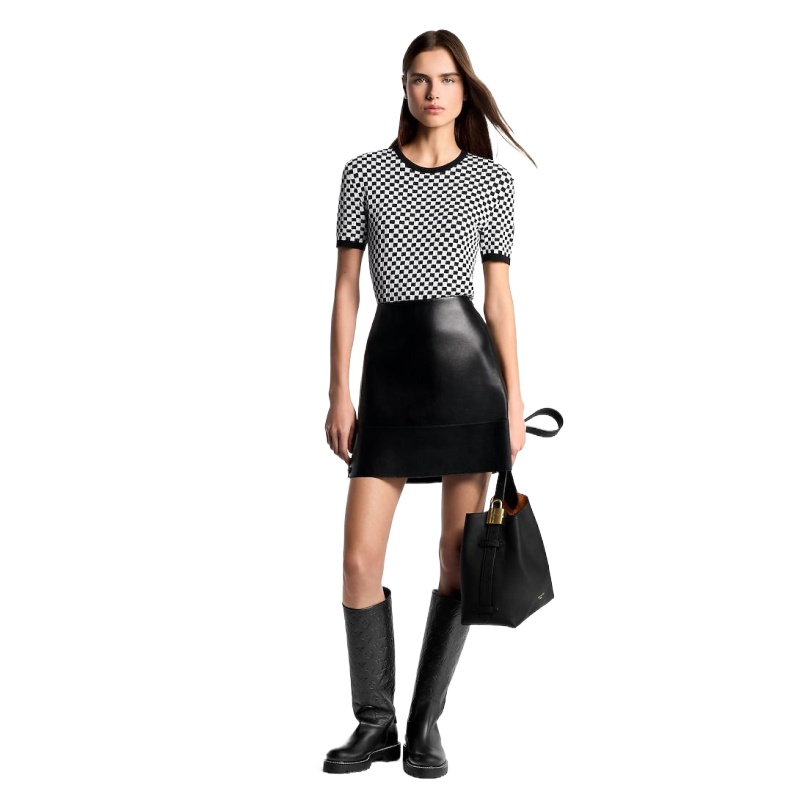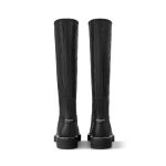 The Territory flat high boot is crafted from a combination of smooth and Monogram-debossed calf leather. This model is notable for its tubular shape and treaded rubber outsole, which is highlighted by contrast stitching. It is signed at the back with a Louis Vuitton-embossed leather label and a loop in Monogram canvas.