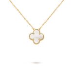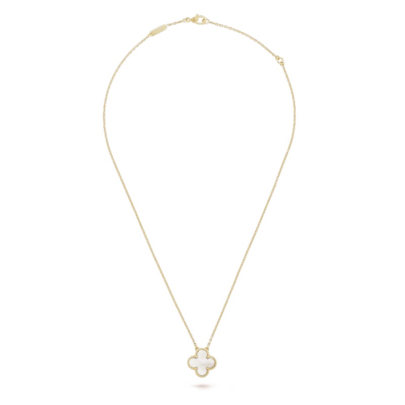 Vintage Alhambra pendant, 18K yellow gold, white mother-of-pearl.The pendant is attached to the necklace’s chain