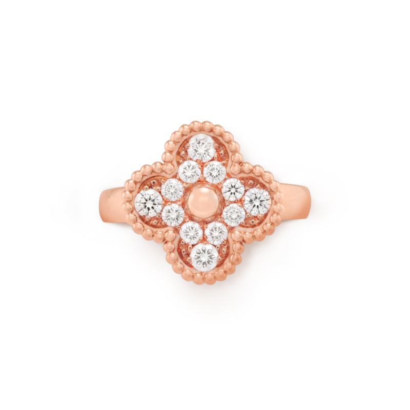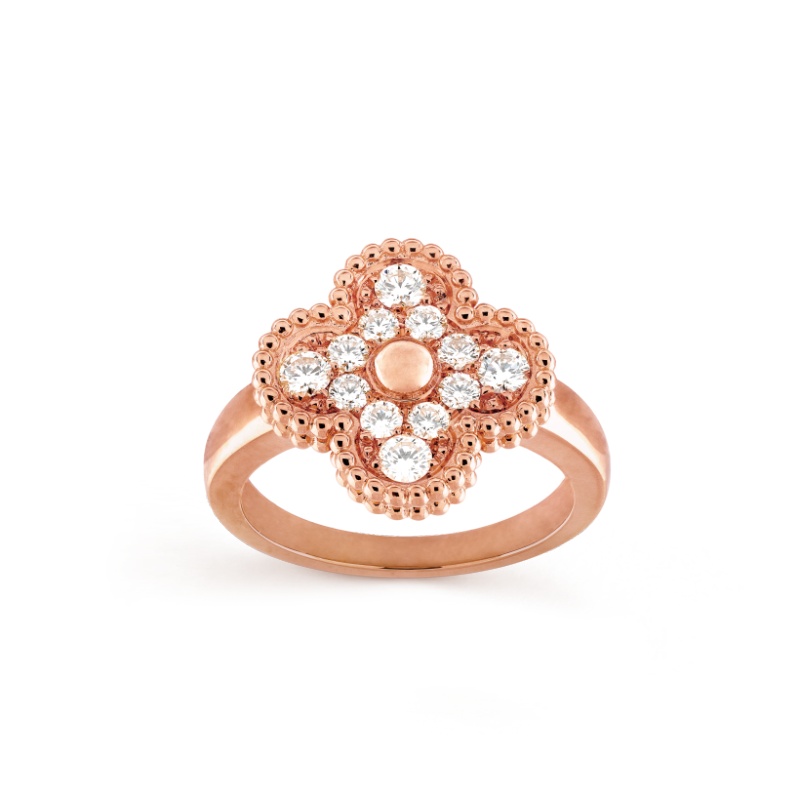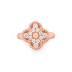 Vintage Alhambra ring, 18K rose gold, round diamonds; diamond quality DEF, IF to VVS.