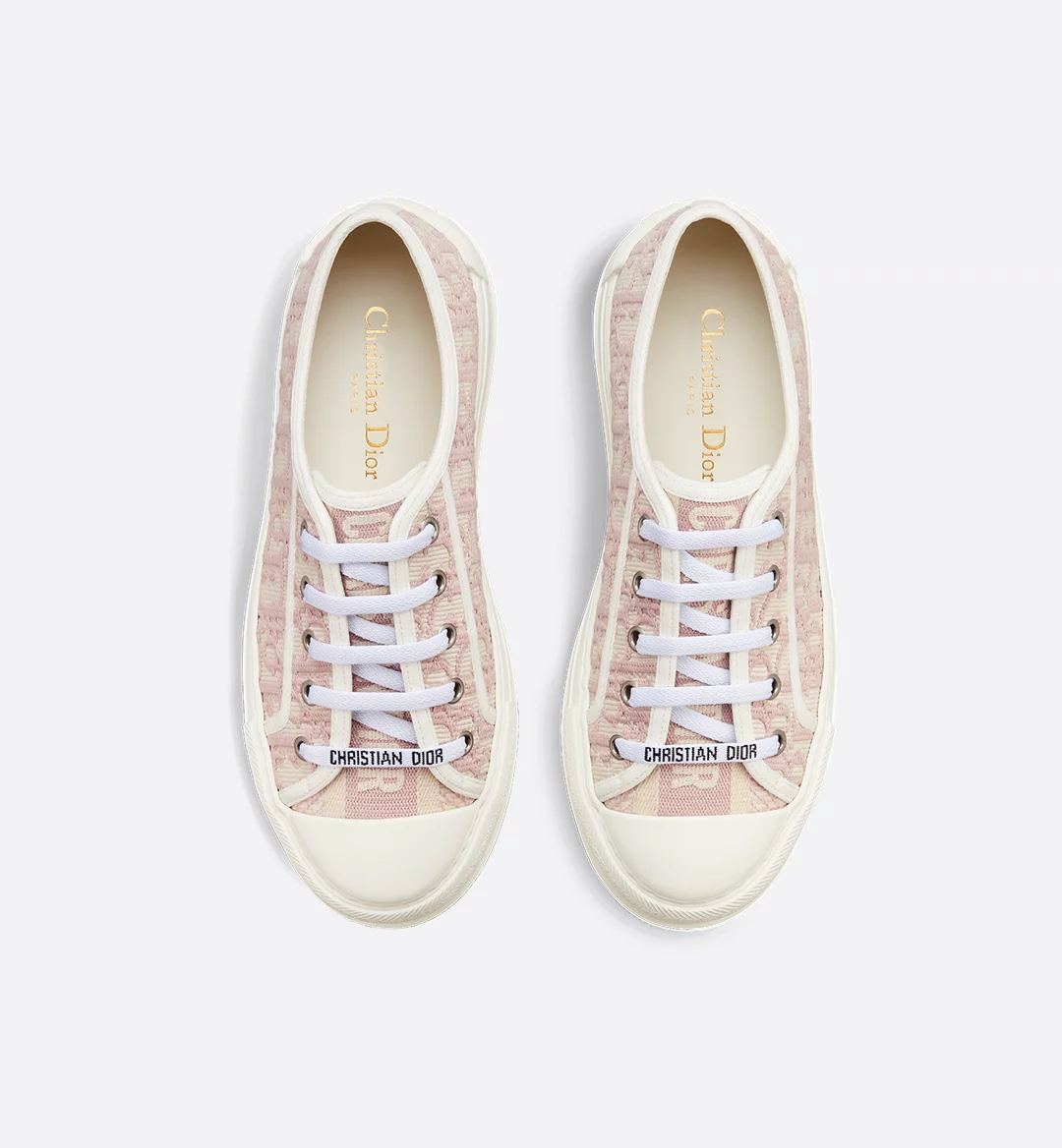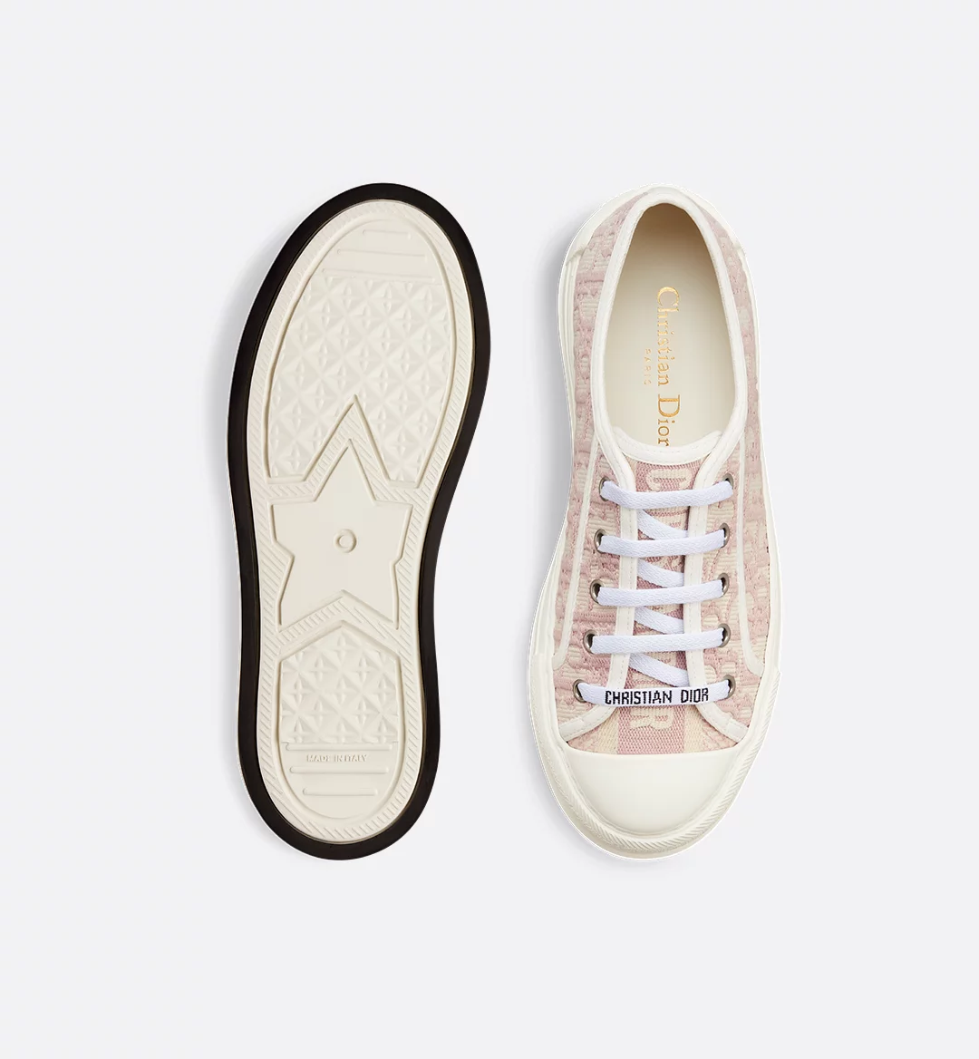 The Walk’n’Dior platform sneaker enhances the line with a modern creation. The nude Dior Oblique embroidered cotton upper is complemented by a comfortable thick sole, tongue and Christian Dior Paris laces. The sneaker will add a contemporary touch to any laid-back look.
