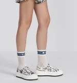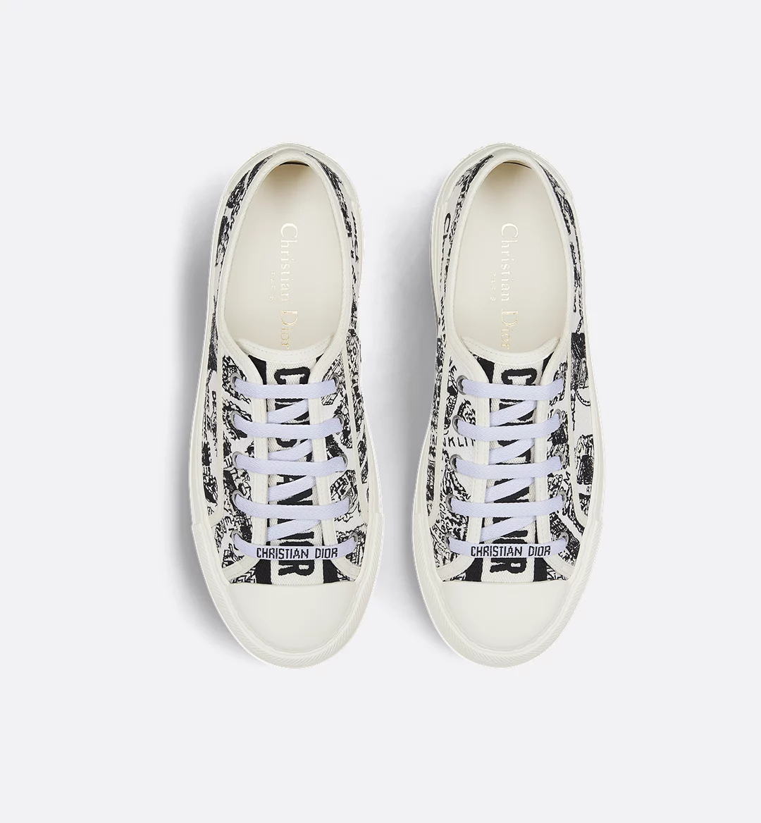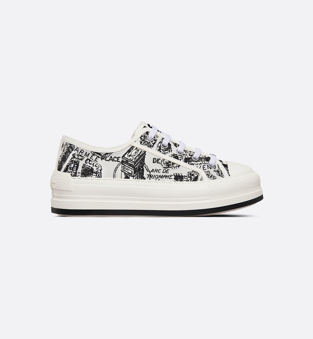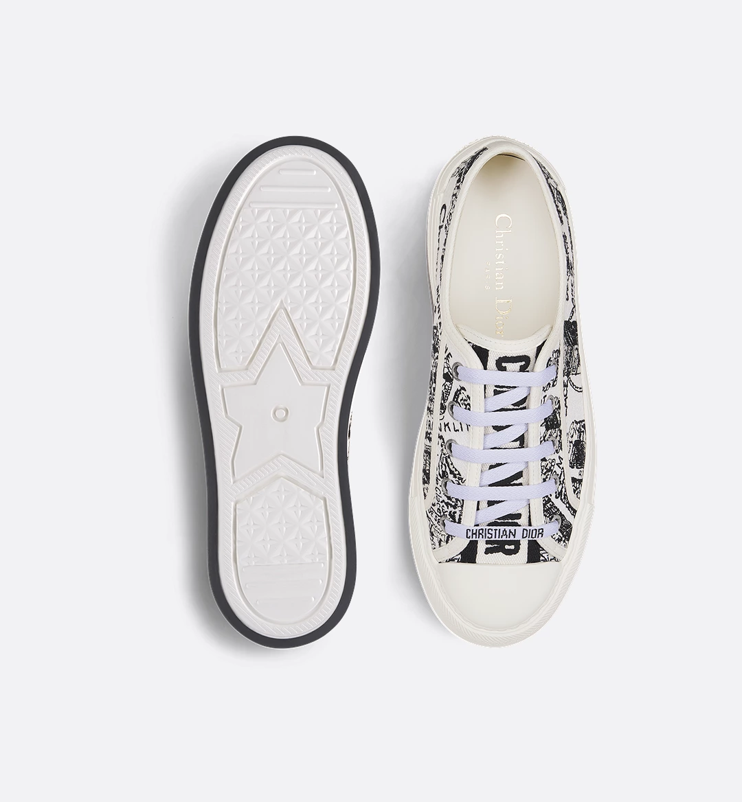 The Walk’n’Dior platform sneaker enhances the line with a modern creation. The embroidered cotton upper showcases the season’s signature white and black Plan de Paris motif, inspired by House archives and centered around Dior’s historic address on Avenue Montaigne. The style is completed with a comfortable thick sole, tongue and Christian Dior Paris laces. The sneaker will add a contemporary touch to any laid-back look.