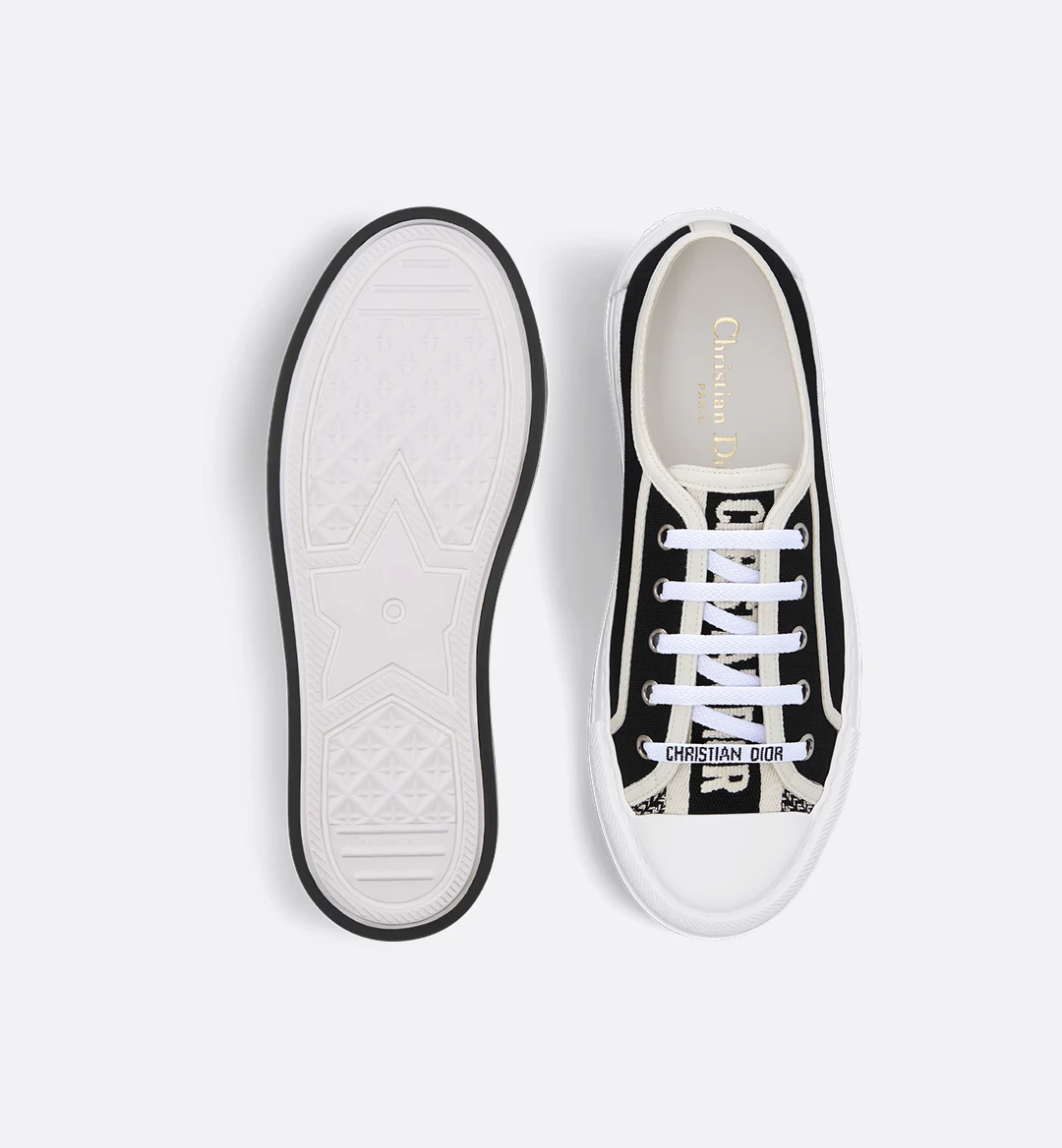The Walk’n’Dior platform sneaker enhances the line with a modern creation. The black cotton canvas upper features a comfortable and ultralightweight thick sole, embroidered tongue and Christian Dior laces. The sneaker will add a contemporary touch to any laid-back look.