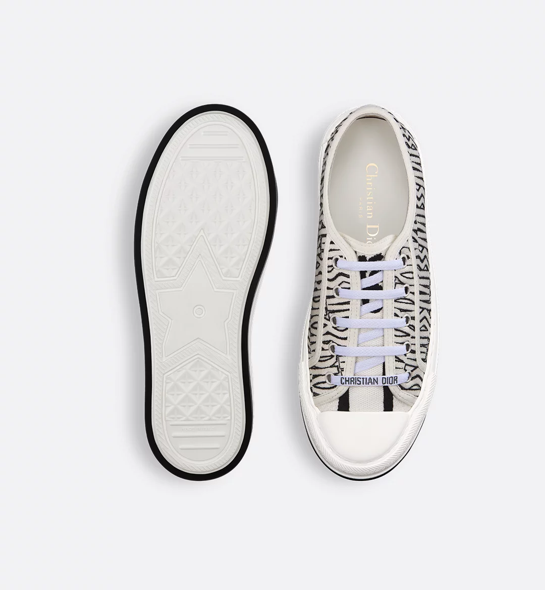 The Walk’n’Dior platform sneaker showcases the collection’s signature white and black Miss Dior Allover motif, inspired by the Marc Bohan for Dior archives in a modern take on the 1960s. The cotton style features a comfortable thick sole, tongue and Christian Dior laces. The sneaker will add a contemporary touch to any laid-back look and can be coordinated with other Miss Dior Allover creations.