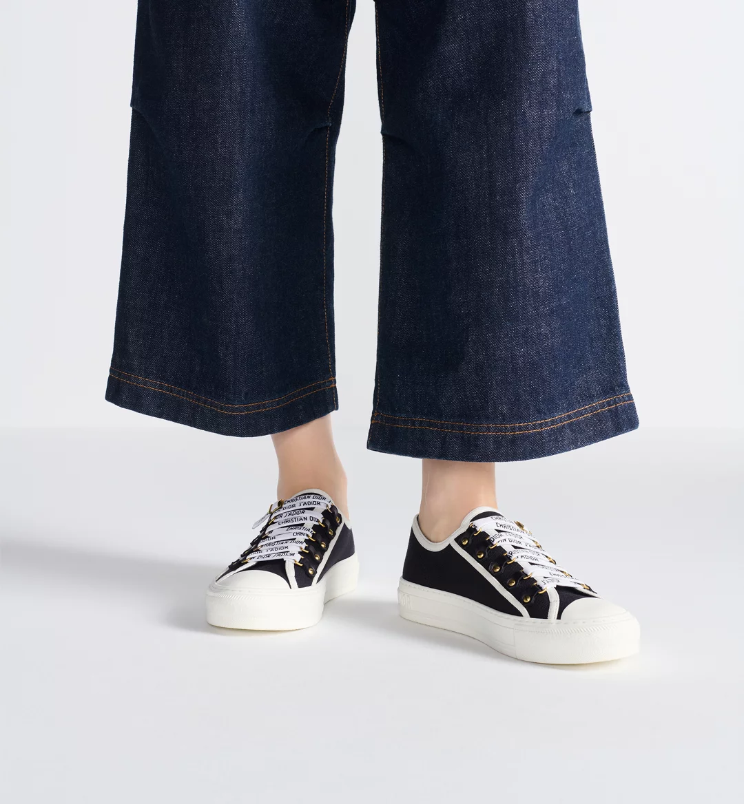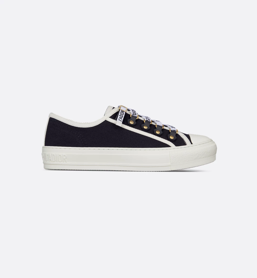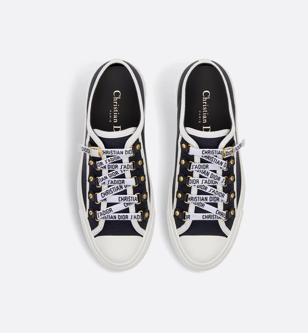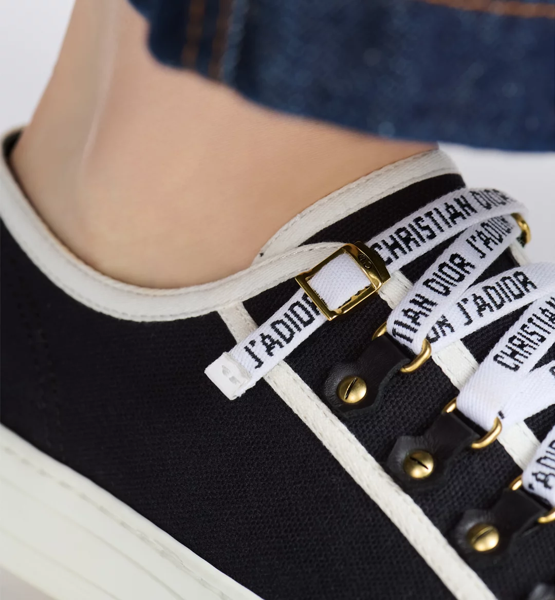 The Walk’n’Dior sneaker is crafted in black cotton canvas and is a timeless design with a relaxed appeal. Embellished with tonal calfskin inserts and antique gold-finish metal detailing, the shoe is completed with Christian Dior J’Adior signatures on the rubber sole and laces. The style will lend a contemporary touch to any look.