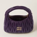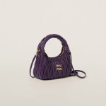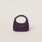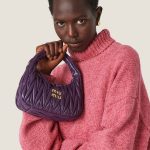 The Wander bag is reinterpreted season after season, becoming an iconic accessory of Miu Miu collections. Made of matelassé nappa leather, the bag is characterized by the sophisticated, three-dimensional effect created by the refined workmanship. The hobo shape, blending retro inspirations and contemporary elegance, becomes a new synonym of modern femininity.