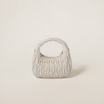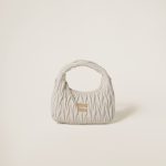 The Wander bag is reinterpreted season after season, becoming an iconic accessory of Miu Miu collections. Made of matelassé nappa leather, the bag is characterized by the sophisticated, three-dimensional effect created by the refined workmanship. The hobo shape, blending retro inspirations and contemporary elegance, becomes a new synonym of modern femininity.