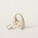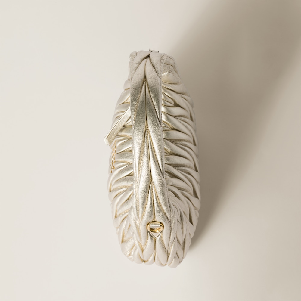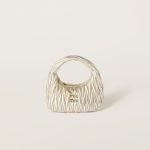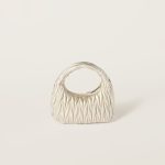 The Wander bag is reinterpreted season after season, becoming an iconic accessory of Miu Miu collections. Made of matelassé nappa leather, the bag is characterized by the sophisticated, three-dimensional effect created by the refined workmanship. The hobo shape, blending retro inspirations and contemporary elegance, becomes a new synonym of modern femininity.