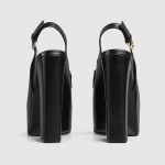 Gucci continues to feature archival symbols. For the latest collection, the Horsebit hardware recalls the House’s equestrian heritage. This pair of women’s slingbacks are defines by the platform high heel that offers stability and comfort.